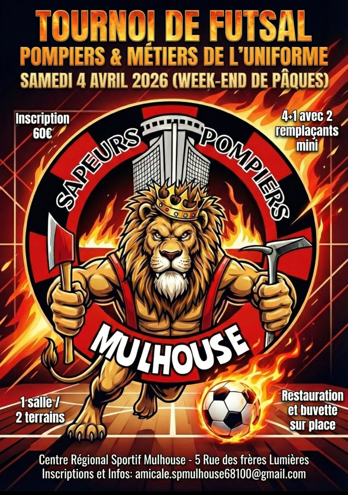 L’Amicale de Mulhouse vous donne rendez-vous pour son tournoi de Futsal ouvert aux pompiers et métiers de l’uniforme.