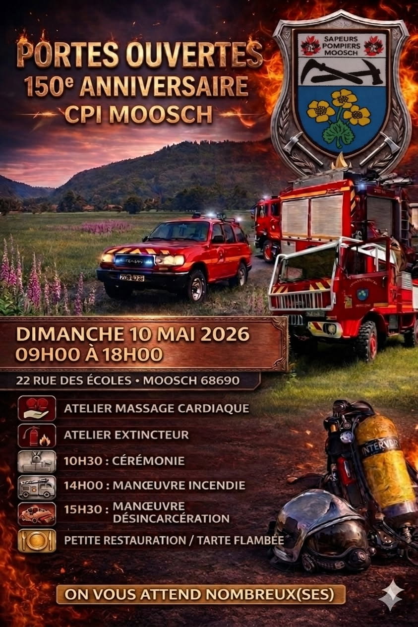 À l’occasion de son 150e anniversaire, le CPI de Moosch ouvre ses portes au public le dimanche 10 mai 2026, de 9h à 18h, au 22 rue des Écoles.